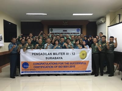Sidoarjo, hari ini Rabu tanggal 18 Mei 2016 di ruang rapat Pengadilan Militer III-12 Surabaya telah dilaksanakan opening meeting Audit Eksternal sertifikasi ISO 9001:2015 rapat tersebut dipimpin oleh Kepala Pengadilan Militer II-12 Surabaya Letkol Laut (KH) Hari Aji Sugianto, SH NRP 11813/P, dengan tim audit ekstenal Bapak Hengky Dwi Jatmiko dan Bapak Subandi S.Si M.T. dalam sambutannya Kepala Pengadilan Militer III-12 Surabaya menyampaikan bahwa audit eksternal ini merupakan langkah kedepan supaya dilmil III-12 Surabaya menjadi lebih baik dalam hal manajemen maupun pelayanan pada pencari keadilan.