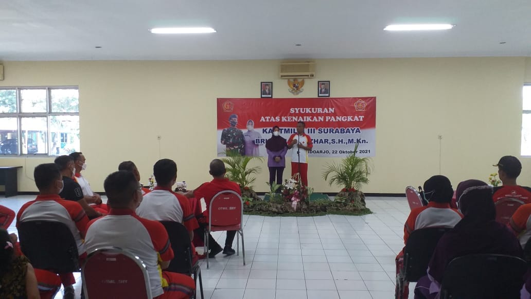 Kepala Pengadilan Militer III-12 Surabaya Kolonel Chk (K) Farma Nihayatul Aliyah, SH beserta seluruh Hakim Militer III-12 Surabaya menghadiri acara syukuran atas kenaikan pangkat Kaotmilti III Surabaya Brigjen TNI Azhar, SH,M.Kn.