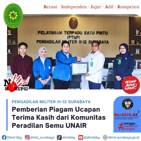 In Berita Comment off Pemberian piagam ucapan terima kasih dari Komunitas Peradilan Semu Universitas Airlangga (UNAIR)