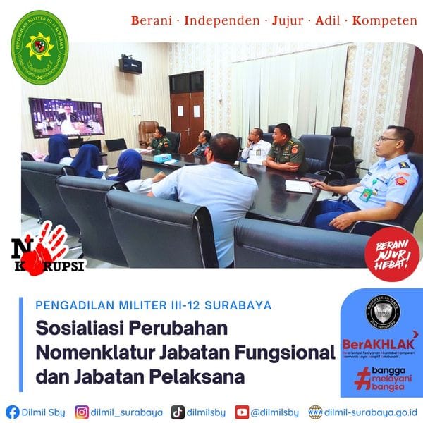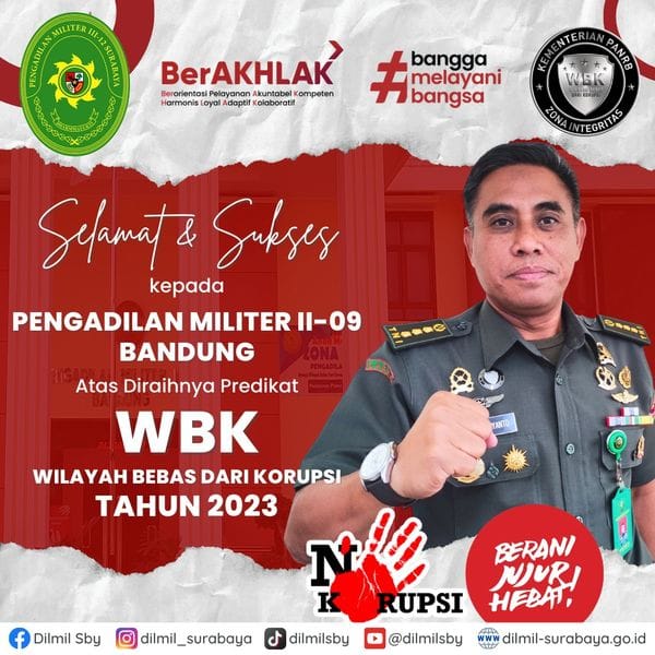 In Berita Comment off Selamat dan Sukses kepada Pengadilan Militer II-09 Bandung yang telah berhasil meraih predikat WBK (Wilayah Bebas dari Korupsi) Tahun 2023
