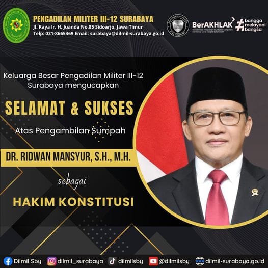 In Berita Comment off Selamat dan Sukses atas pengambilan sumpah jabatan Dr. Ridwan Mansyur, S.H., M.H. sebagai Hakim Konstitusi