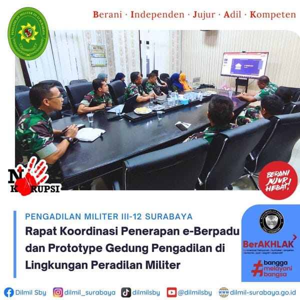 In Berita Comment off Rapat Koordinasi Penerapan e-Berpadu dan Prototype Gedung Pengadilan di Lingkungan Peradilan Militer