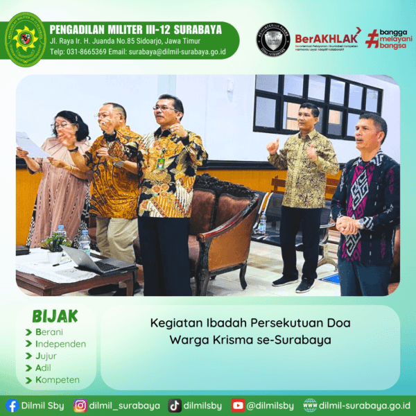 In Pengumuman Comment off Pelayanan di Pengadilan Militer III-12 Surabaya sudah kembali normal melalui akses pintu depan.