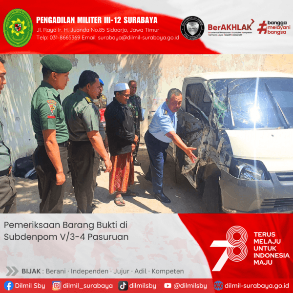 In Berita Comment off Kegiatan pemeriksaan barang bukti sesi kedua dengan lokasi berada di Subdenpom V/3-4 Pasuruan