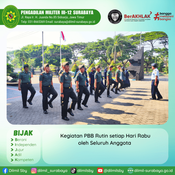 In Berita Comment off Seluruh anggota melaksanakan korve di lingkungan sekitar kantor Pengadilan Militer III-12 Surabaya