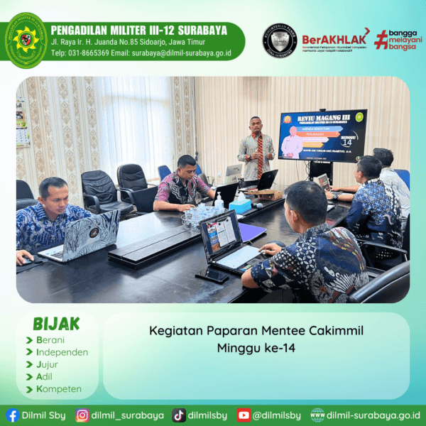 In Berita Comment off Kegiatan Paparan Mentee Calon Hakim Militer (Cakimmil) PPC IV Magang III Minggu ke-14