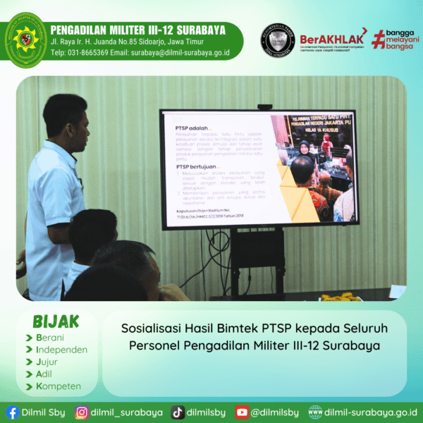 In Berita Comment off Bimbingan Teknis Pelayanan Terpadu Satu Pintu (PTSP) di Lingkungan Peradilan Militer Tahun Anggaran 2023