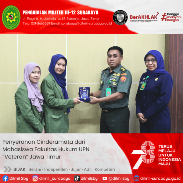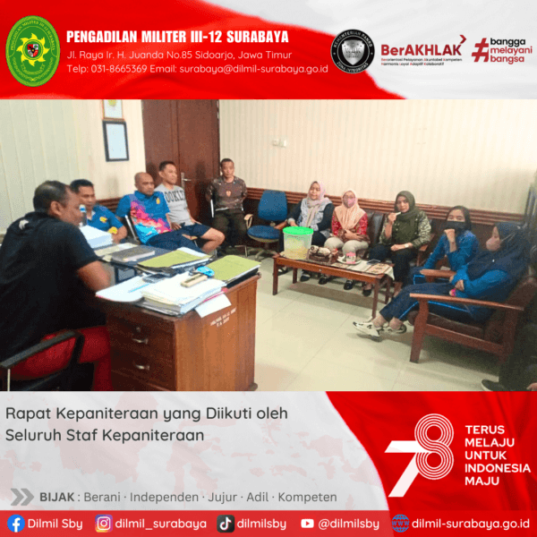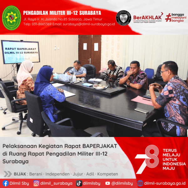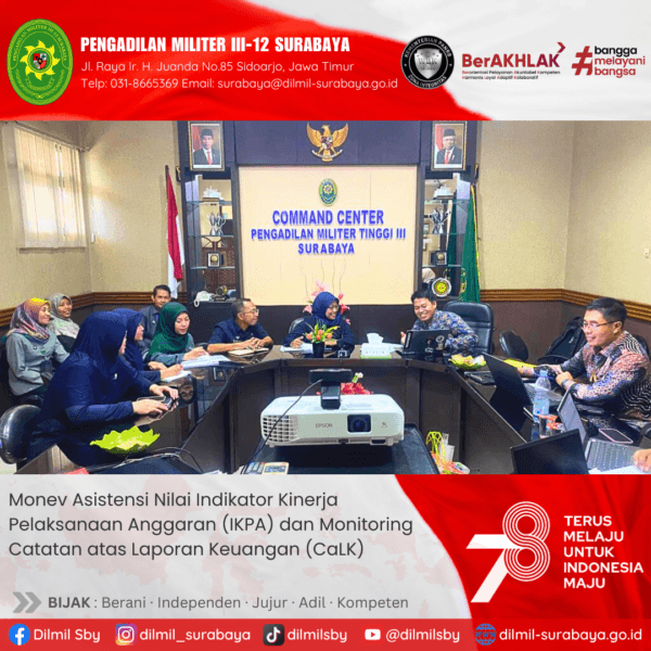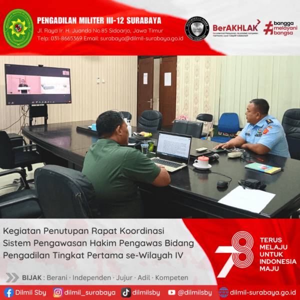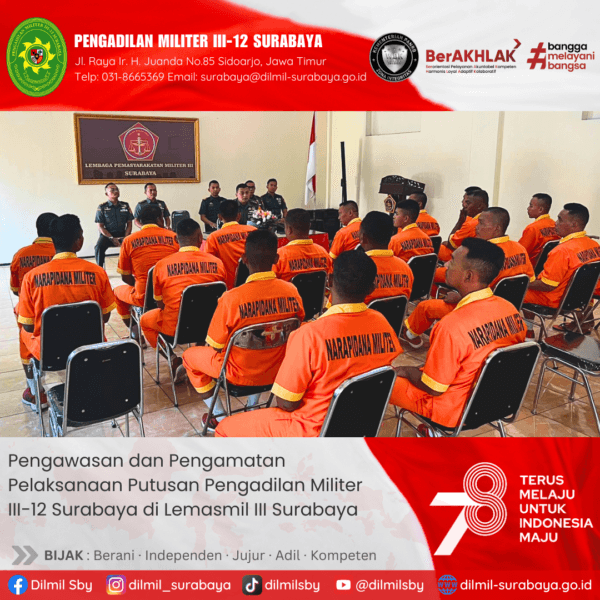 In Berita Comment off Kegiatan Pengawasan dan Pengamatan (Wasmat) Pelaksanaan Putusan Pengadilan Militer III-12 Surabaya di Lembaga Pemasyarakatan Militer (Lemasmil) III Surabaya