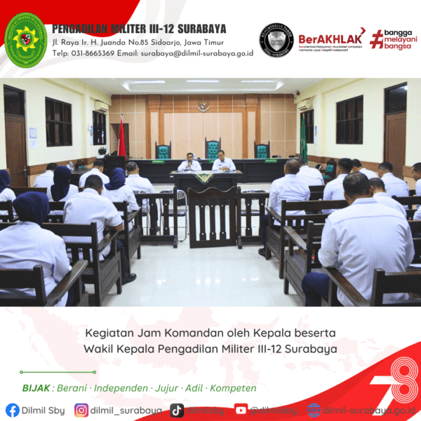 In Berita Comment off Jam Komandan yang dipimpin langsung oleh Kadilmil III-12 Surabaya Kolonel Chk Sugeng Aryanto, S.H., M.H