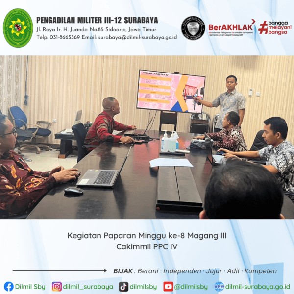 In Berita Comment off Kegiatan Paparan Mentee Calon Hakim Militer (Cakimmil) PPC IV Magang III Minggu ke-8