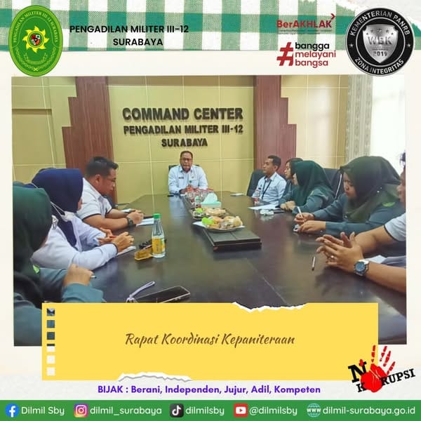 In Berita Comment off Koordinasi Evaluasi Kinerja dan Penyusunan Laporan di Jajaran Pengadilan Militer Tinggi III Surabaya