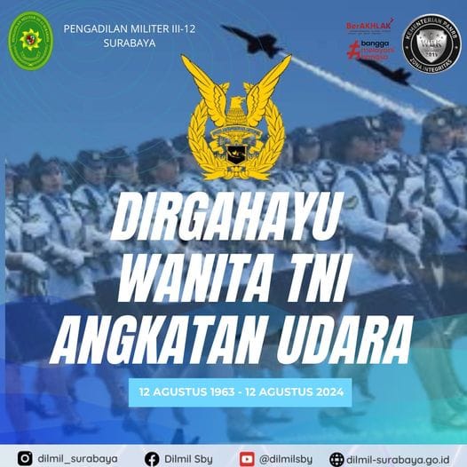 12/08/2024 - In Berita By Dilmil III-12 Admin 2 Comment off Dirgahayu Wanita TNI Angkatan Udara Kepala Pengadilan Militer III-12 Surabaya Kolonel Chk Sugeng Aryanto, S.H., M.H beserta seluruh personel mengucapkan Dirgahayu Wanita TNI Angkatan Udara Previous Mengucapkan Selamat dan Sukses Atas Pengambilan Sumpah Jabatan dan Pelantikan Next Pemeriksaan Barang Bukti
