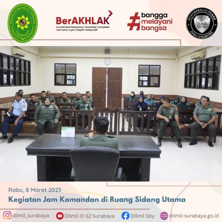 Bertempat Diruang Sidang Utama Pengadilan Militer III-12 Surabaya Dilaksanakan Jam Komandan Yang Dipimpin Langsung Kepala Pengadilan Militer III-12 Surabaya Letnan Kolonel Chk Sugeng Aryanto, S.H. Yang Diikuti Oleh Seluruh Anggota Pengadilan Militer III-12 Surabaya