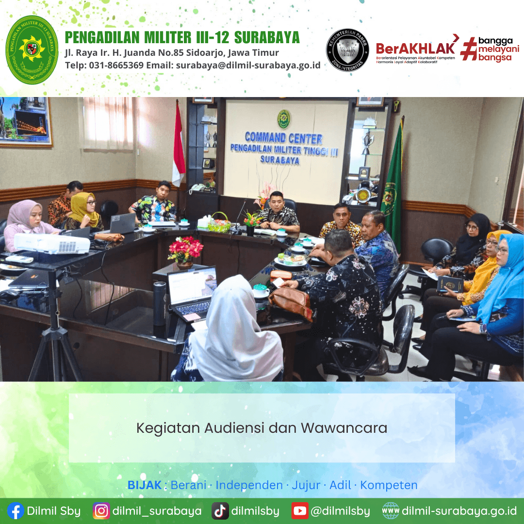 #dilmil #dilmilsby #dilmilsurabaya #pengadilan #Peradilan #pengadilanmiliter #pengadilanmilitersurabaya #berakhlak #ASNBerAKHLAK #BanggaMelayaniBangsa #ReformasiBirokrasi #WBKWBBM #kemenPANRB #mahkamahagungRI #zonaintegritas #wilayahbebaskorupsi #wbk #audiensi #wawancara #pohonkinerja #akip #csf #lf #reformasibirokrasi
