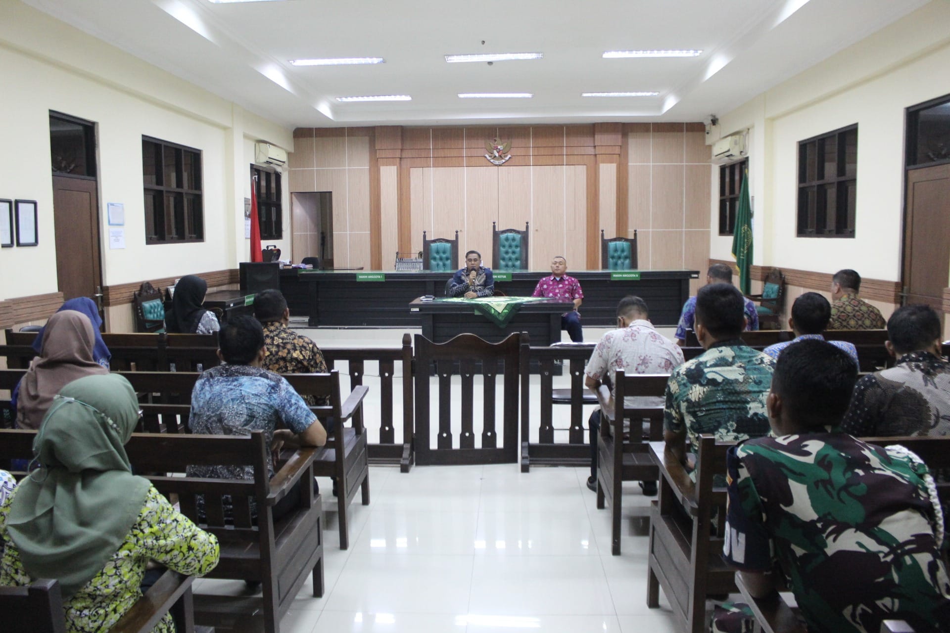 Kepala Pengadilan Militer III-12 Surabaya Kolonel Chk Sugeng Aryanto, S.H.,M.H. memimpin kegiatan Jam Komandan bulan November 2023 di Ruang Sidang Utama Pengadilan Militer III-12 Surabaya. Kegiatan ini diikuti oleh Hakim Militer, Panitera, Sekretaris, Kasubbag, dan seluruh anggota Pengadilan Militer III-12 Surabaya.