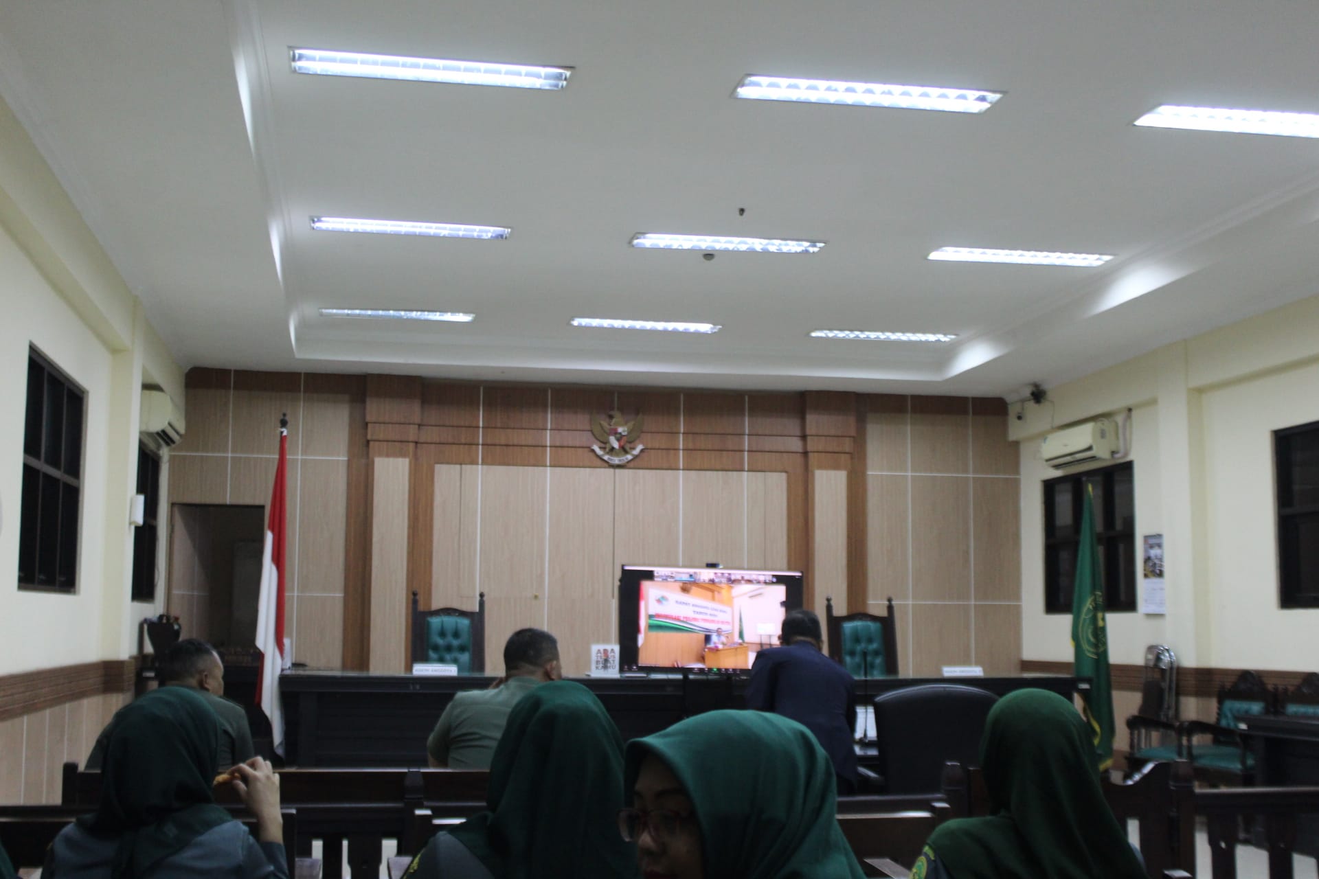 Sidoarjo, 08 Februari 2023 Kepala Pengadilan Militer III-12 Surabaya Letnan Kolonel Chk Sugeng Aryanto, S.H. beserta seluruh anggota Koperasi Kopegdilmil di jajaran Pengadilan Militer III-12 Surabaya mengikuti rapat koperasi kopegdilmil di ruang sidang utama secara daring.
