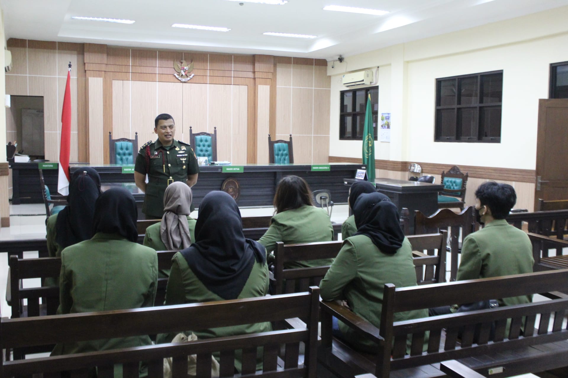 Pada tanggal 2 Mei 2023 bertempat di Ruang Sidang Utama Pengadilan Militer III-12 Surabaya dilaksanakan kegiatan pembekalan mengenai Pengadilan Militer kepada para mahasiswa magang dari Universitas Pembangunan Nasional “Veteran” Jawa Timur. Dalam kesempatan ini anggota Pokkimmil Letnan Kolonel Chk Arif Sudibya, S.H., M.H. memberikan pengarahan kepada para mahasiswa magang tersebut.