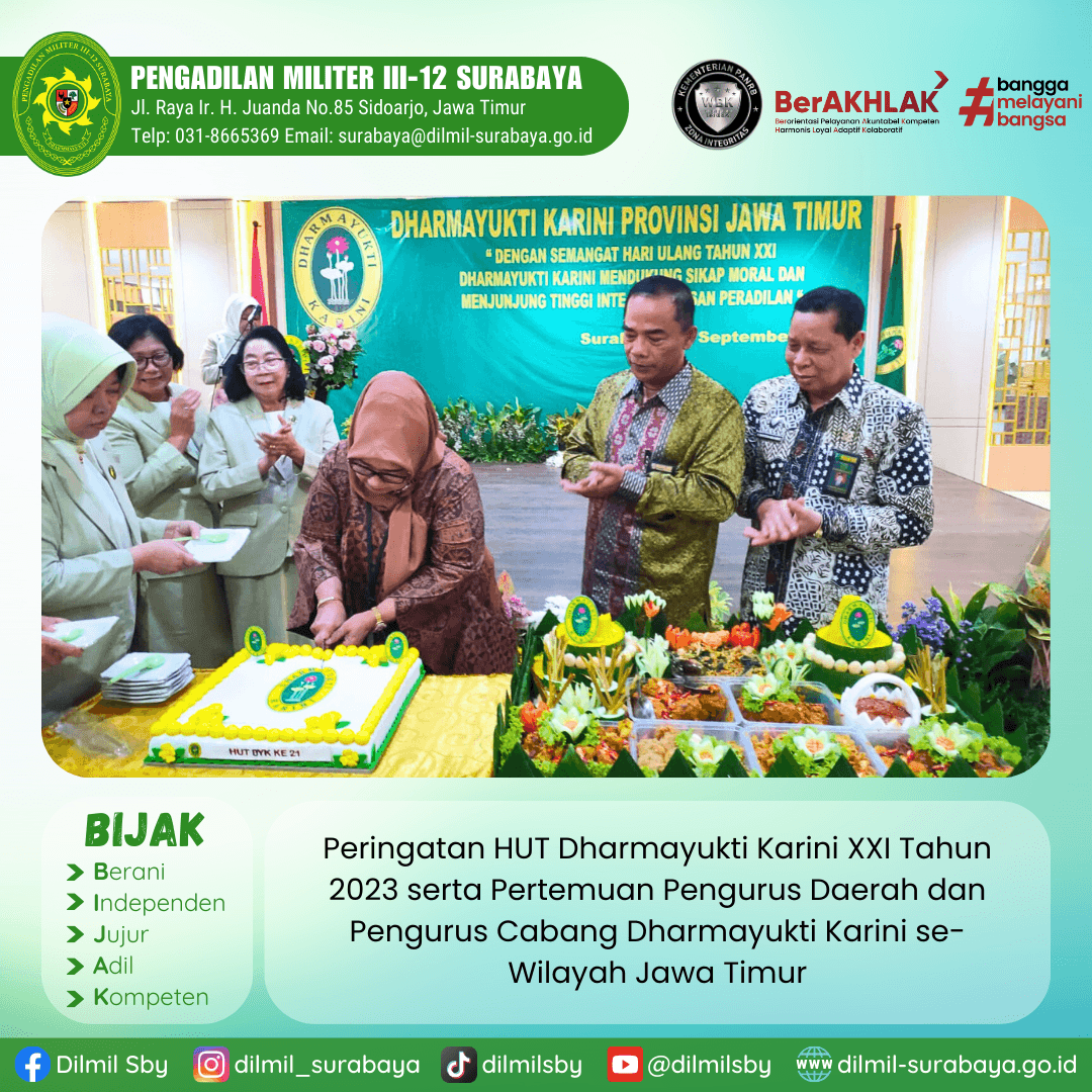 Kegiatan peringatan Hari Ulang Tahun (HUT) Dharmayukti Karini XXI Tahun 2023 sekaligus pertemuan Pengurus Daerah dan Pengurus Cabang Dharmayukti Karini se-Wilayah Jawa Timur