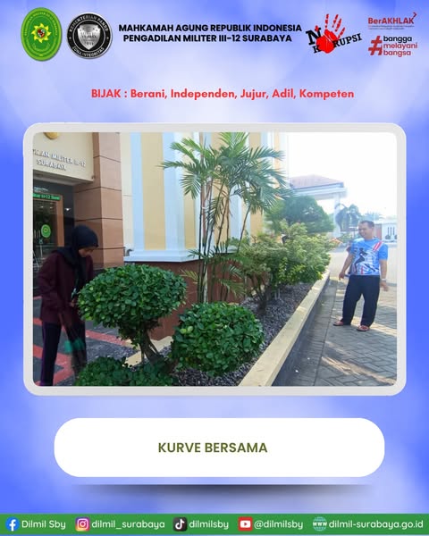 Seluruh personil Pengadilan Militer III-12 Surabaya dan mahasiswa magang melaksanakan korve rutin setiap hari Kamis setelah apel pagi.