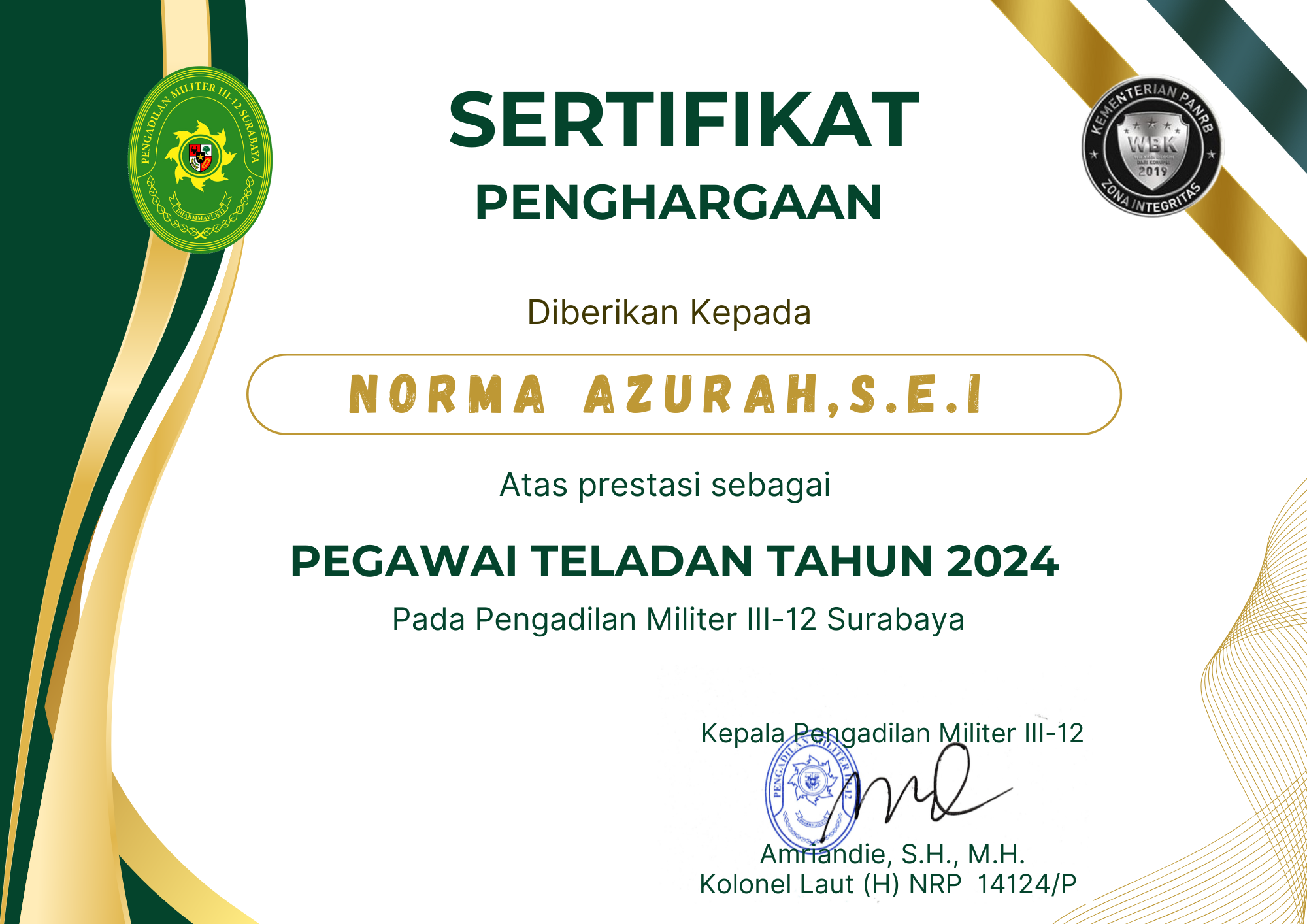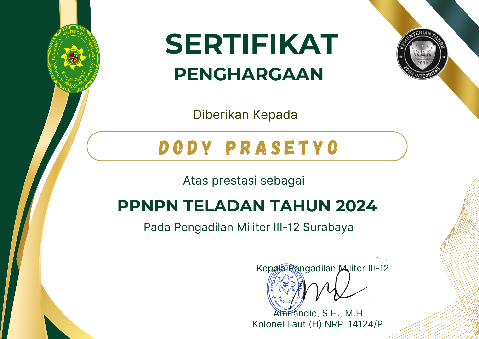 26/08/2022 - In Berita By Dilmil III-12 Admin 2 Comment off Pegawai Teladan Pegawai Teladan Tahun 2024 Piagam Pegawai Piagam PPNPN Pegawai Teladan Tahun 2023 Piagam Pegawai Piagam PPNPN Pegawai Teladan Tahun 2022 Piagam PegawaiPiagam PPNPN Pegawai Teladan Tahun 2020 Piagam PegawaiPiagam PPNPN Previous Pembinaan Bidang Teknis dan Administrasi Yudisial Next Jam komandan bulan Agustus 2022
