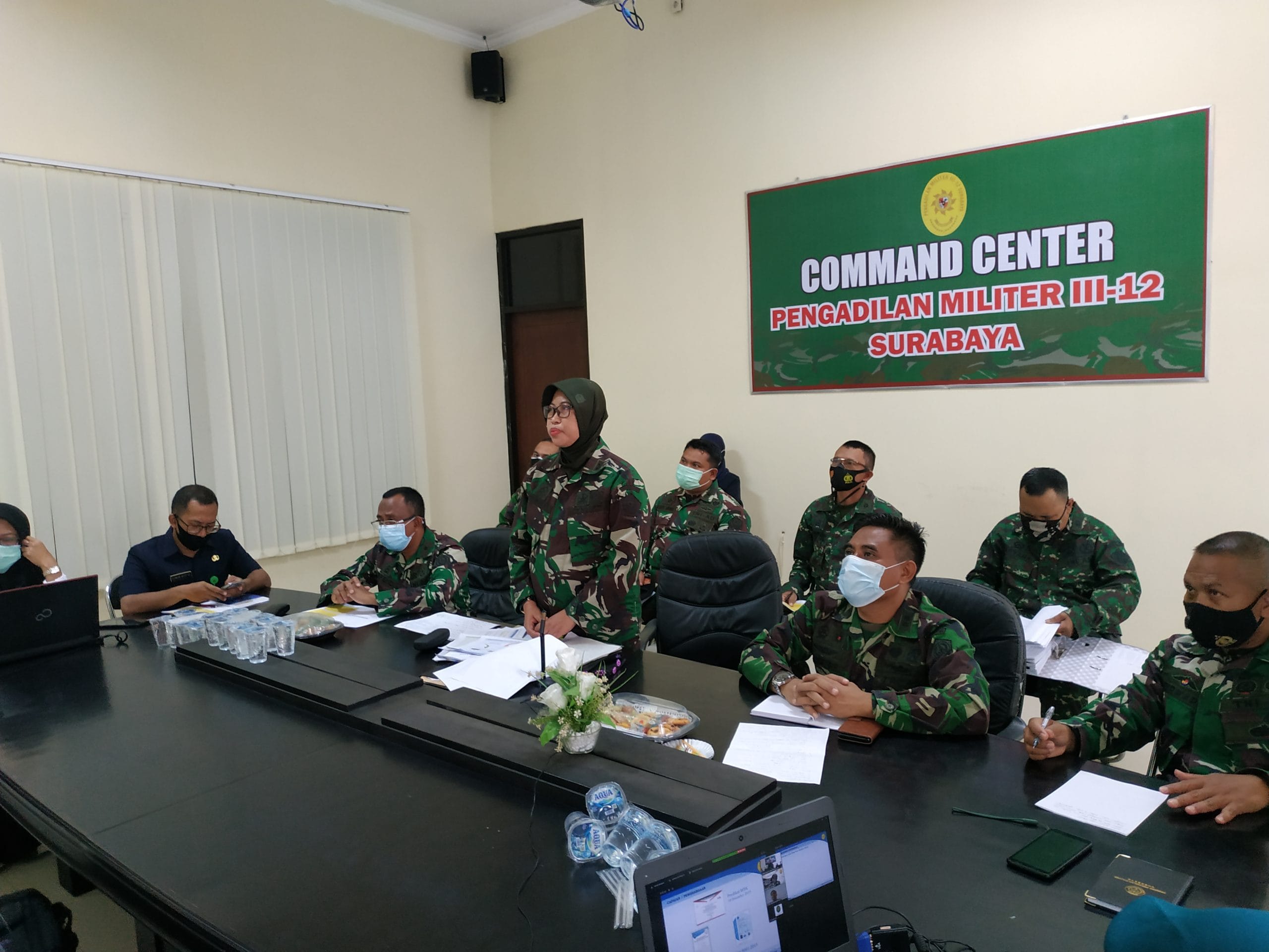 Pada tanggal 15 Maret 2021 bertempat di ruang Rapat Pengadilan Militer III-12 Surabaya, Waka Dilmil III-12 Surabaya Letkol Chk Farma Nihayatul A, S.H bersama Penanggung Jawab masing-masing area pembangunan ZI tahun 2021 mengikuti kegiatan Desk Evaluasi WBBM Pembangunan ZI Tahun 2021 bersama Tim Evaluator dari BAWAS MARI