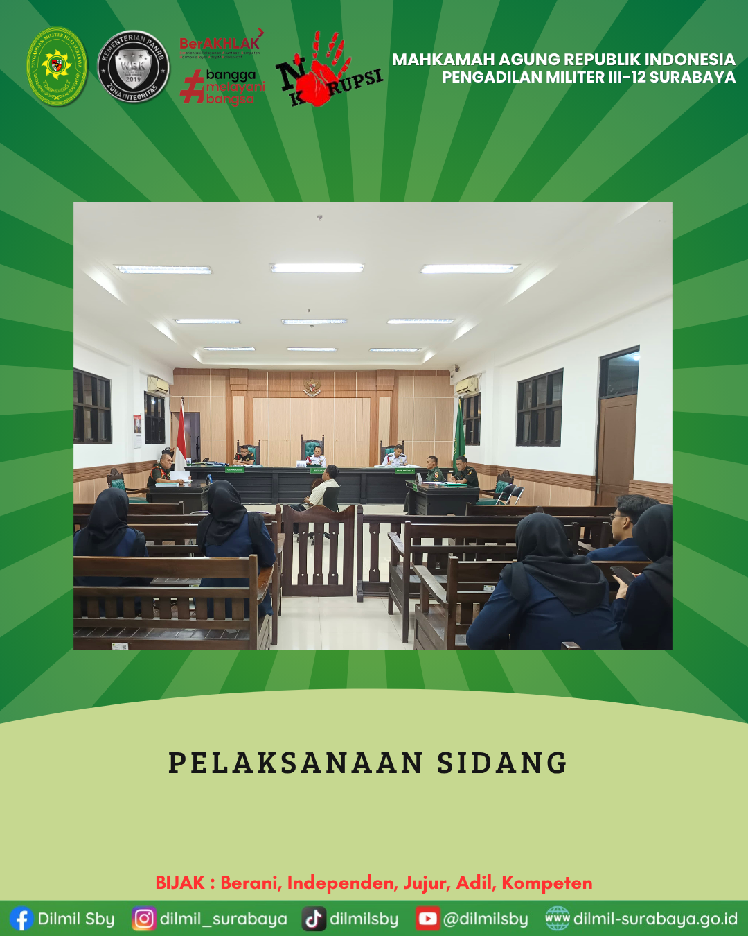 #dilmil #dilmilsby #dilmilsurabaya #pengadilan #Peradilan #pengadilanmiliter #pengadilanmilitersurabaya #berakhlak #ASNBerAKHLAK #BanggaMelayaniBangsa #ReformasiBirokrasi #WBKWBBM #kemenPANRB #mahkamahagungRI