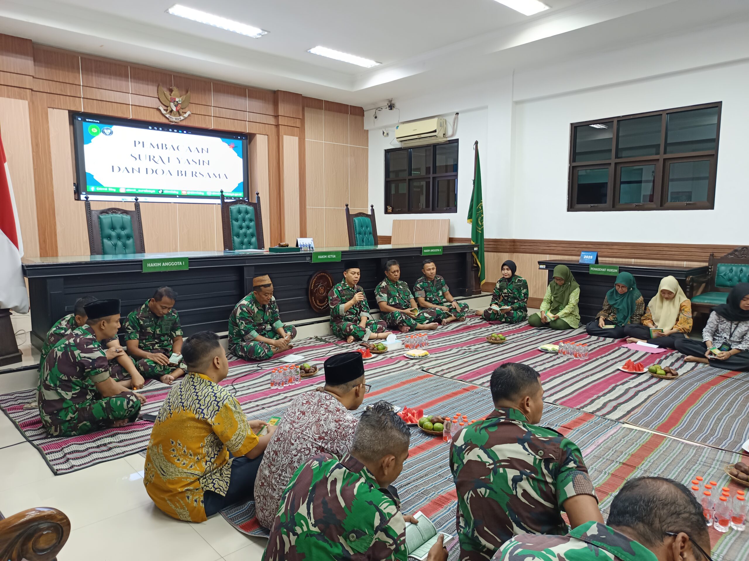 Seluruh personel Pengadilan Militer III-12 Surabaya yang beragama Islam mengikuti kegiatan pembacaan surat yasin dan doa bersama. Kegiatan yang dipimpin langsung oleh Kepala Pengadilan Militer III-12 Surabaya Kolonel Laut (H) Amriandie, S.H.,M.H ini dilaksanakan di Ruang Sidang Cakra Pengadilan Militer III-12 Surabaya. Semoga dengan kegiatan ini seluruh personel mendapatkan keberkahan. Aamiin.