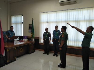 Sidoarjo, Hari Senin tanggal 04 Juni 2018, Kepala Pengadilan Militer III-12 Surabaya Kolonel Laut (KH) Hari Aji Sugianto, S.H mengambil sumpah dan melantik Peltu Muhaimin, S.H.,M.H sebagai Panitera Pengganti.