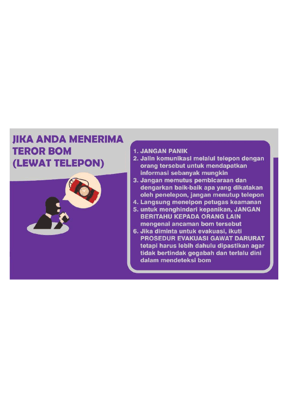 3. Penerima ancaman bom memberitahukan adanya ancaman bom kepada Petugas Tanggap Darurat Gedung.