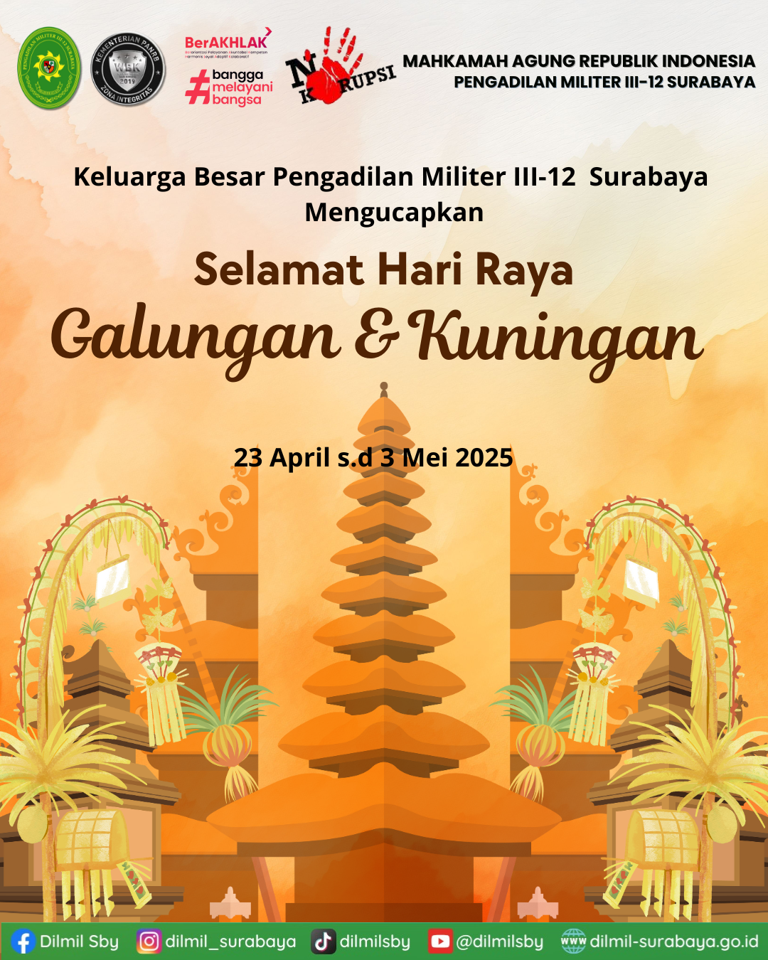 Keluarga Besar Pengadilan Militer III-12 Surabaya mengucapkan Selamat Hari Raya Galungan dan Kuningan.