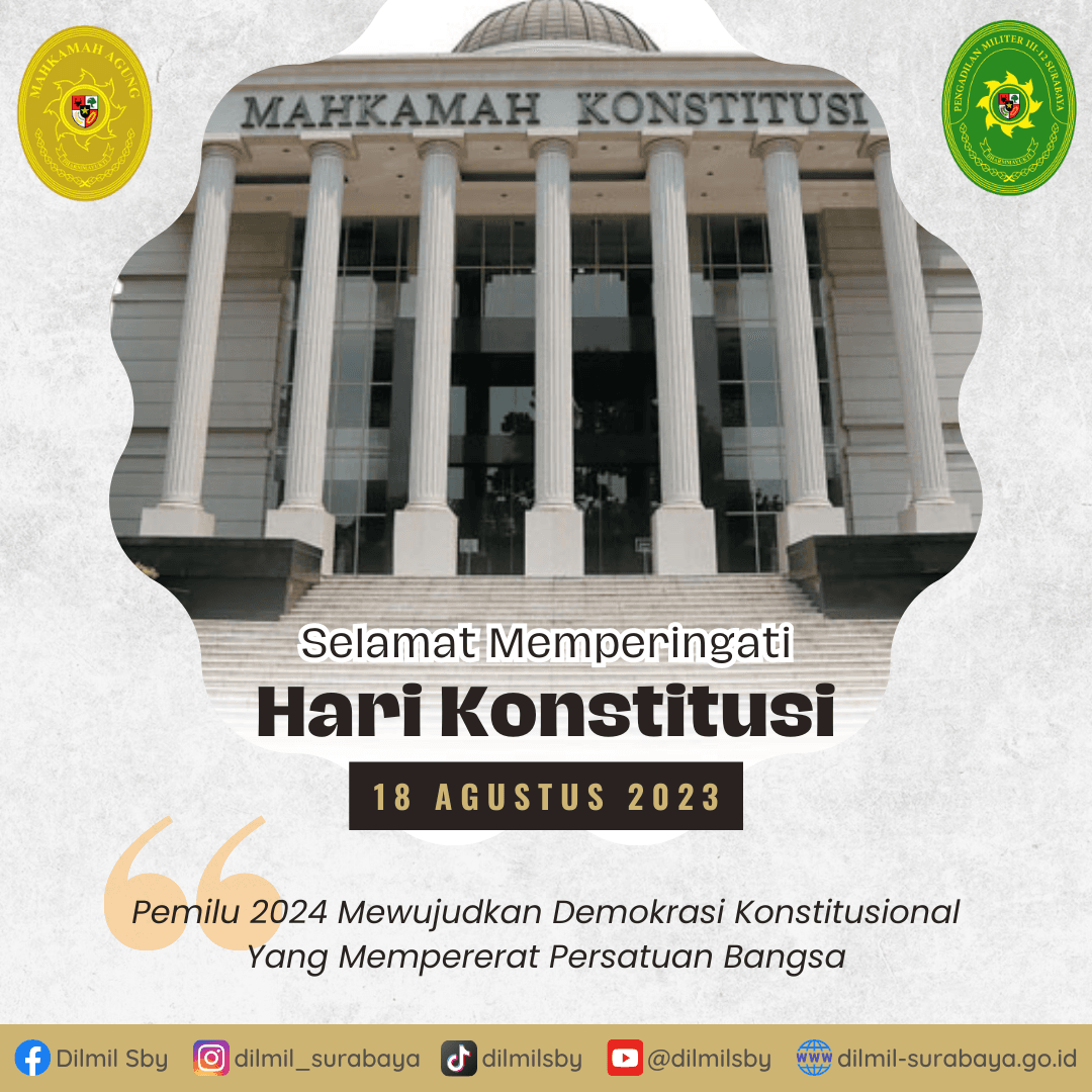 Kepala Pengadilan Militer III-12 Surabaya Kolonel Chk Sugeng Aryanto, S.H. beserta seluruh anggota mengucapkan, Selamat memperingati Hari Konstitusi 18 Agustus 2023.