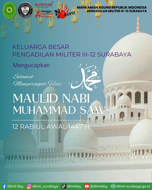 08/09/2025 - In Berita By Dilmil III-12 Admin 2 Comment off Selamat memperingati Hari Maulid Nabi Muhammad SAW. Previous Pengumuman Next Dirgahayu Korps Hukum TNI AU