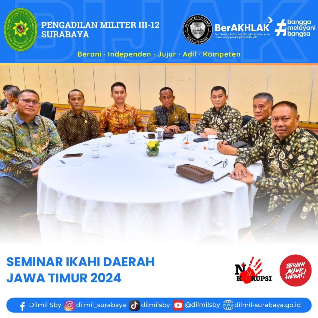 Hakim Militer Mayor Chk Musthofa, S.H., M.H. menghadiri Seminar IKAHI Daerah Jawa Timur 2024. Kegiatan yang diselenggarakan di Ballroom Hotel Sangri-La Surabaya ini mengusung tema “Artificial Intelligence dan Pembuktian Elektronik dalam Peradilan Militer”.