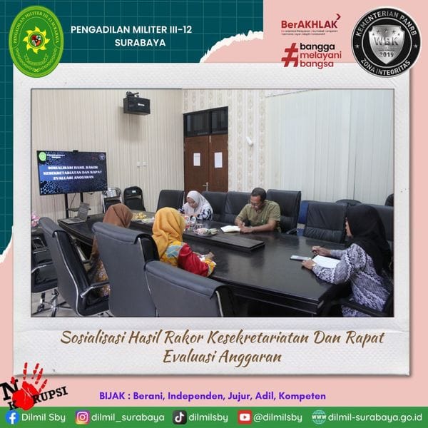 Bertempat di ruang command center seluruh pejabat keuangan mengikuti kegiatan Sosialisasi Hasil Rakor Kesekretariatan Dan Rapat Evaluasi Anggaran, kegiatan ini dipimpin langsung oleh Sekretaris sebagai Kuasa Pengguna Anggaran Firda Nuril Hanifah, S.Si., M.PSDM.