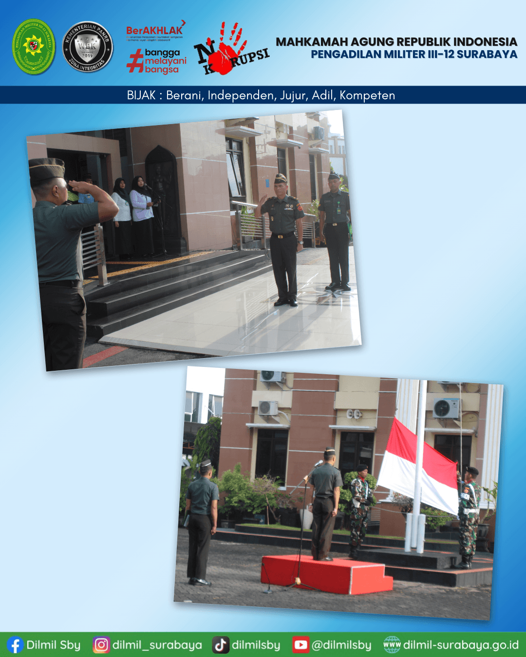 #dilmil #dilmilsby #dilmilsurabaya #pengadilan #Peradilan #pengadilanmiliter #pengadilanmilitersurabaya #berakhlak #ASNBerAKHLAK #BanggaMelayaniBangsa #ReformasiBirokrasi #WBKWBBM #kemenPANRB #mahkamahagungRI #zonaintegritas #wilayahbebaskorupsi #wbk #upacaratanggal17 #dilmilti3