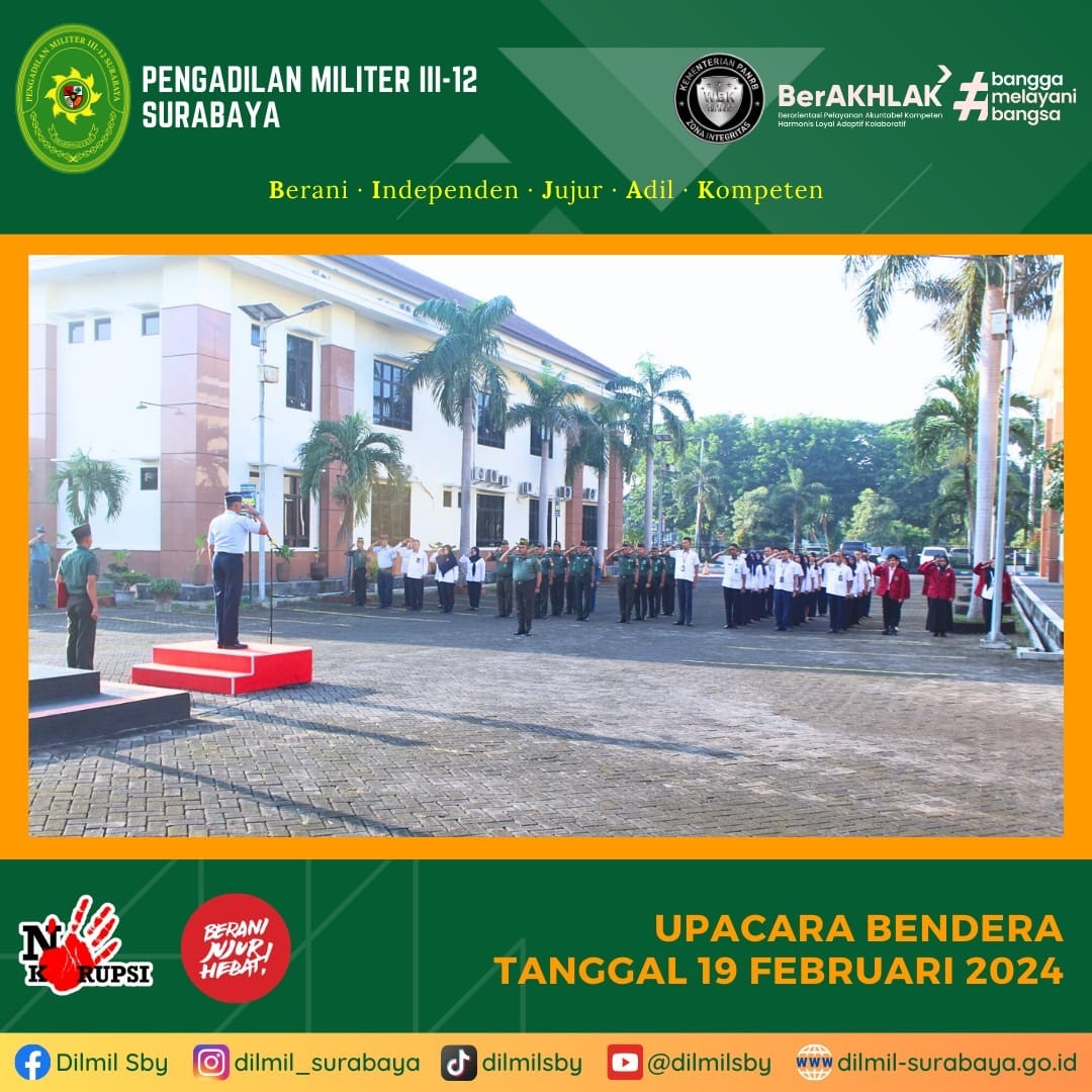 Seluruh personel Pengadilan Militer III-12 Surabaya dan Pengadilan Militer Tinggi III Surabaya mengikuti Upacara Bendera rutin setiap tanggal 17. Kegiatan ini dilaksanakan di Lapangan Pengadilan Militer Tinggi III Surabaya. Bertindak sebagai Inspektur Upacara adalah Hakim Pengadilan Militer Tinggi III Surabaya Kolonel Kum Saifuddin, S.H., M.H.