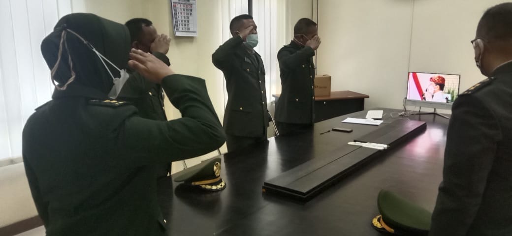 Kepala Pengadilan Militer III-12 Surabaya Letkol Chk (K) Farma Nihayatul Aliya, S.H berserta seluruh anggota mengikuti kegiatan Upacara Peringatan Detik-Detik Proklamasi Hari Kemerdekaan Republik Indonesia ke 76 di istana presiden secara virtual.